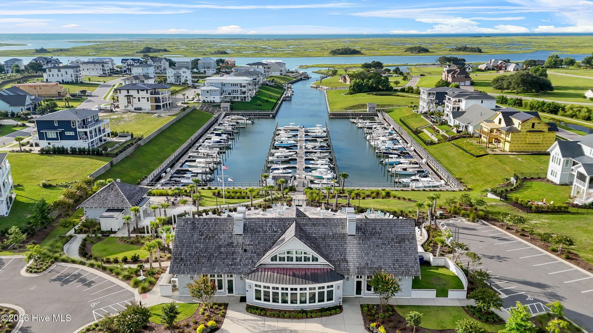 Designed by Scott Sullivan and built in 2021 by Crane Building Company, this custom coastal home is located in the gated, custom section of the desirable community of Salters Haven at Lea Marina and was designed to capture sweeping marina and Intracoastal Waterway views. A well-executed reverse floor plan places the main living spaces on the top level, where vaulted 16-foot ceilings, hardwood floors, a gas fireplace with custom built-ins, and a wet bar create an ideal space for everyday living and entertaining. The gourmet kitchen features quartz countertops, an oversized island, 42'' custom Hollingsworth cabinetry, a GE Café 6-burner gas range with double ovens, panel-front appliances, and a walk-in pantry. Sliding doors open to an expansive covered deck; the perfect place to enjoy a morning cup of coffee or sunset gatherings with friends and family. The primary suite offers a private coastal retreat with deck access and peaceful water views, a custom walk-in closet, and a spa-inspired bath with dual vanities, brushed gold fixtures, new mirrors and a fully tiled walk-in shower. Additional living spaces include a custom bunk room, a guest suite with deck access, and a flexible fourth room suitable for a home office, bedroom, or playroom. With over 1,900 square feet of outdoor living space, this home embraces the coastal lifestyle with multiple covered decks, a ground-level lanai, and an enclosed outdoor shower. Additional features include elevator-ready closets on all three levels, a built-in surround sound system, Hardie-plank siding, Trex decking, an oversized garage with storage, and a covered carport. The private, fenced yard offers space for a future pool and is not located in a flood zone. This home offers the opportunity for the ultimate coastal experience for every boater's want and need.
