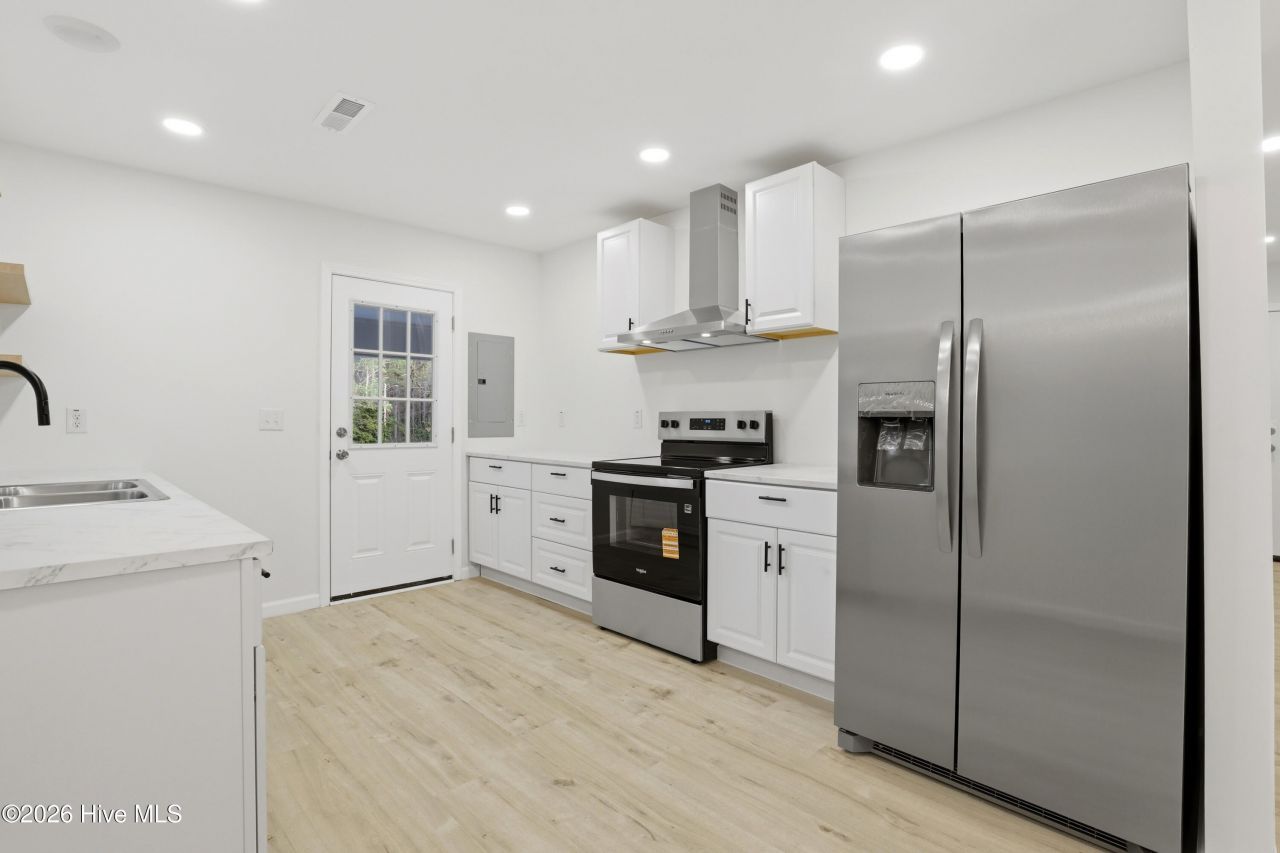 Experience the perfect blend of classic curb appeal and modern luxury in this stunning, top-to-bottom renovation. This brick ranch sits prominently on a spacious corner lot and has been completely reimagined for 2026. Every major system is brand new, including the roof, energy-efficient windows, HVAC, and water heater, offering the ultimate peace of mind for years to come. Inside, the home features a bright and airy open layout anchored by stylish new LVP flooring that flows seamlessly through every room. The fully remodled kitchen has brand-new cabinetry and a full suite of modern appliances, while the fully remodeled bathroom has all new fixtures.The property is as functional as it is beautiful, offering spacious bedrooms and a covered carport that includes a large attached storage room--perfect for a workshop or seasonal gear. For the frequent traveler or commuter, the location is unbeatable, situated just minutes from Highway 64 for easy access to Raleigh or the coast. You are also just eight minutes away from the vibrant Rocky Mount Mills with its unique local breweries and dining, and only six minutes from the Rocky Mount Event Center. This prime proximity to major attractions makes the home not only a perfect primary residence but also a high-potential opportunity for an investor looking for a lucrative short-term rental.