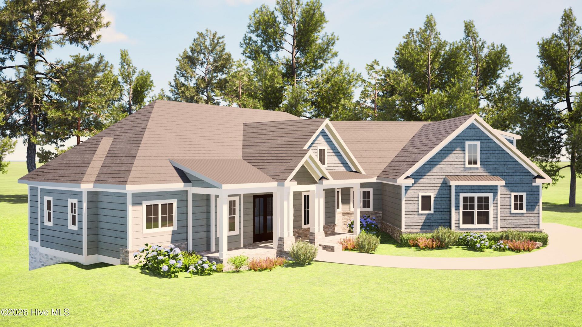 Daydreaming about a golf-front Palace in Pinehurst? Find your fairytale at 20 New Castle Place; a truly rare opportunity, situated on the 11th Fairway of the Magnolia Course in the serene Pinewild Country Club. Quiet, cul-de-sac living, tucked into the popular gated community, minutes to the world-renowned Village of Pinehurst. Time slows down as you watch the golf carts drive by your fairway and pond view, relaxing on the 1,424 sqft of exterior entertainment space, including a covered outdoor kitchen with gas grill. While the stunning, hard-to-find golf-front lot wants to be the star, this incredible 5,686 sqft, 5 bed, 5.5 bath new construction home still shines bright. Enjoy 3,030 sqft of easy-access main level living, including a first floor primary bedroom and bathroom with free standing tub and zero entry shower. Bring the outside in: the window-lined living room makes it feel bright and open, with sweeping vaulted ceiling and gas fireplace. Hungry for a culinary kitchen? You'll love the high quality, American-made Kith cabinets, stainless steel appliances, drawer microwave, and seated kitchen island with a view. Plus a scullery for more prep space and storage. Formal dining with custom molding, perfect for hosting. Soak up the view even more with an additional den and second fireplace. Seldom found in the South, 20 New Castle features a 1,562 sqft, fully finished, walk-out lower level with a giant family room, 2 guest suites, and 10' ceilings that could easily accommodate a golf simulator. And finally, above the garage, you'll find 1,094 sqft on the 2nd level, including an additional bedroom, bathroom, plus bonus space. 3 car garage. 2 tankless propane water heaters. Whole home generator. Pinewild features two 18 hole championship courses, a nine hole par 3, a luxury pool, tennis courts, private lake, walking trails, playground, and, set to open Q1 2027, a brand new $18m clubhouse with restaurant. Seller offering a full initiation fee to Pinewild CC - a $40k value! Est. Completion: August 2026