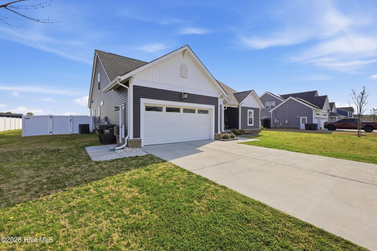 Why wait for New Construction? This home is available in Wentworth at Currituck Reserve --enjoy peaceful country living just minutes from the VA/NC state line. This home features a desirable first-floor primary suite, and an interior in-law suite.Step into a wide-open foyer that flows into a formal dining area and an impressive great room with vaulted ceilings and a gas fireplace. The bright, eat-in kitchen includes a large island that was upgraded from builder spec, pantry, quartz countertops, solid wood cabinets, and direct access through the spacious keeping room into the covered screened-in back porch that overlooks the large fenced-in back yard. Features like this make this home perfect for relaxing or entertaining.The main-level primary suite offers a generous bedroom, spa-like bath, and an oversized walk-in closet. Upstairs, you'll find two additional bedrooms, a bathroom, and a media loft overlooking the great room below.This home also comes with a 30A Generator Connection wired to the breaker, a full house water filtration system, an upgraded 6-person kitchen island, and a 30x10 concrete patio. Add this one to your showing list and take a walk through one of the county's most beautiful like-new homes. A short walk away is the Moyock Public Library, and the brand new Tulls Creek Elementary School; the counties newest school with over 40 classrooms that's being built to serve K-5 and is projected to open in August of 2026.