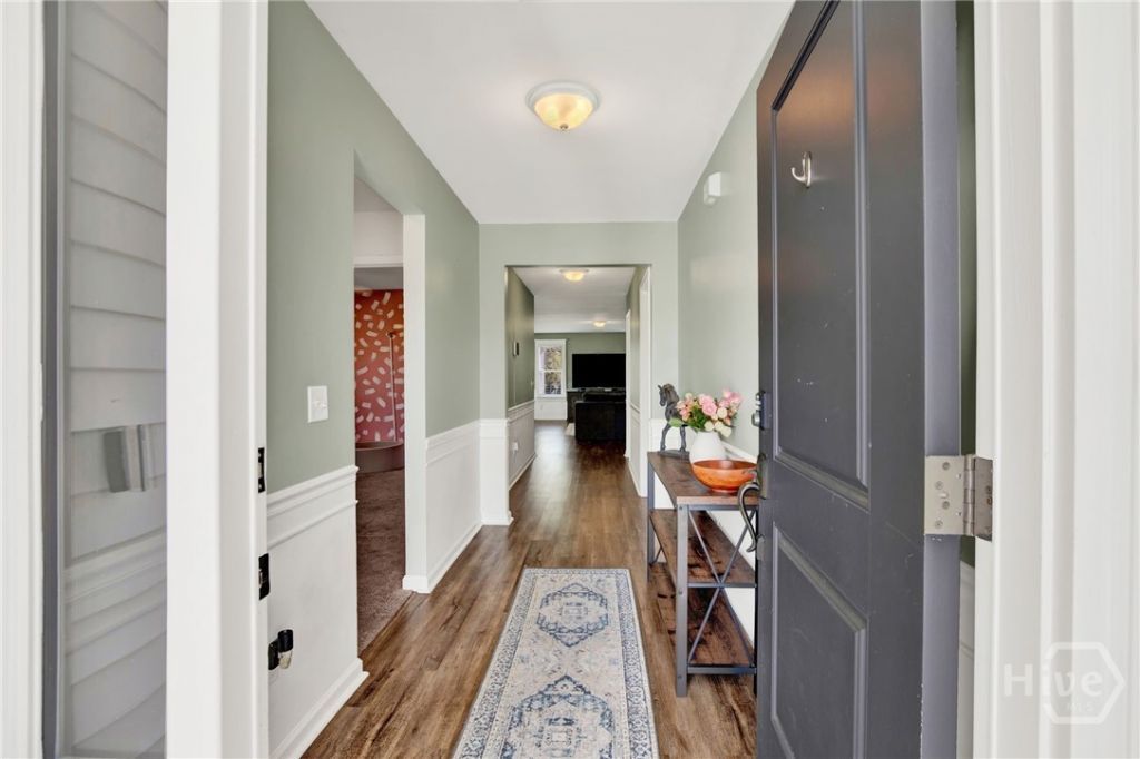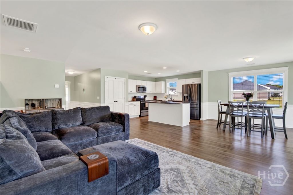 Set on 1.22 acres with a low HOA and pond view, this 3-bedroom, 2-bath home offers an open-concept layout with luxury vinyl plank flooring, moldings, and a spacious kitchen featuring granite countertops, white cabinetry, stainless steel appliances, and a large island perfect for entertaining. The kitchen flows into the great room and dining area, with sliding doors leading to a covered patio. The owner's suite includes dual vanities, a soaking tub, and a separate shower, while two additional bedrooms share a full bath. Upstairs, a large bonus room offers flexible space for a fourth bedroom, office, or media room. The large yard provides endless outdoor potential, all conveniently located between Richmond Hill and Hinesville.