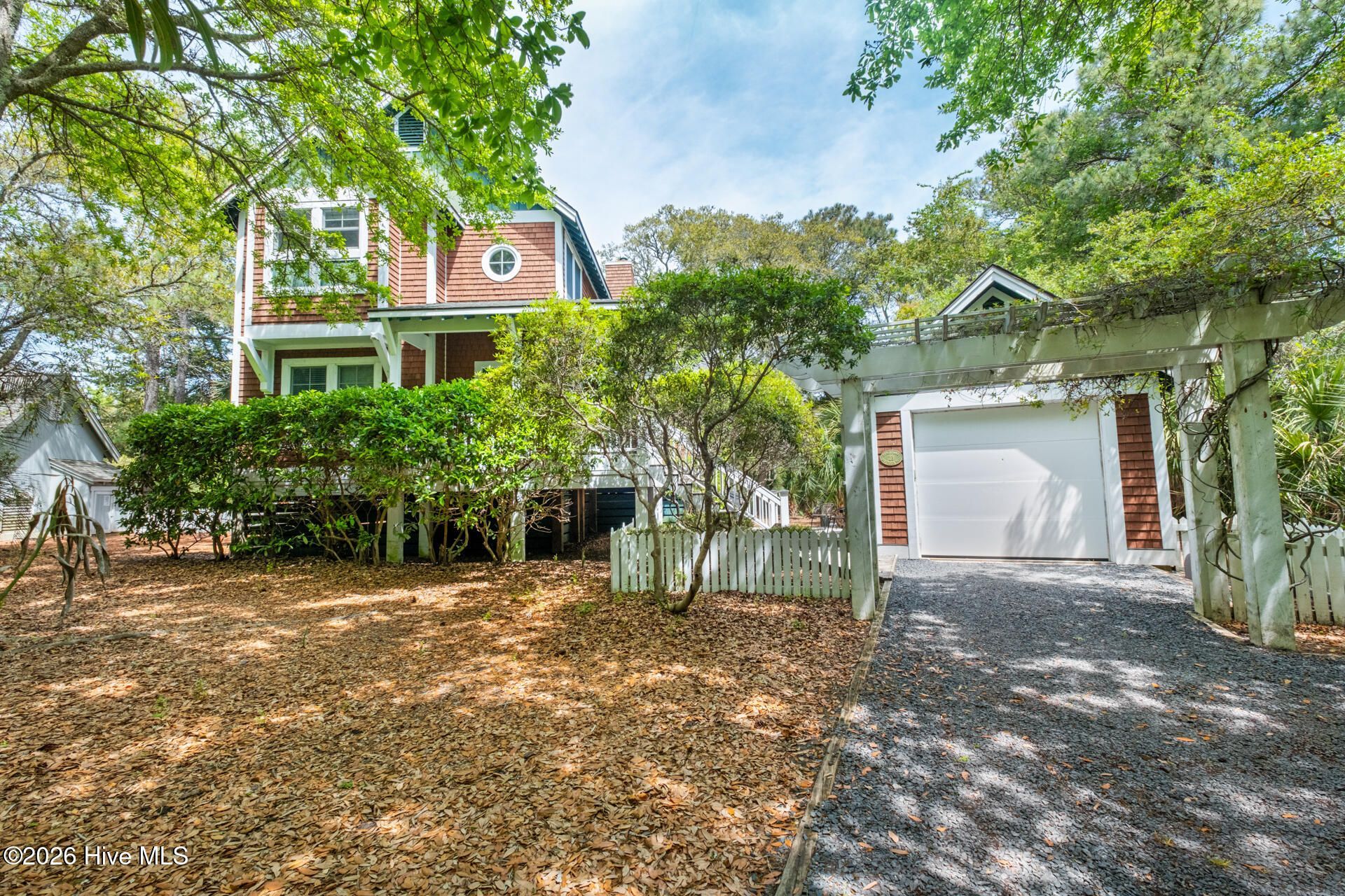 Tucked beneath a canopy of mature maritime forest and overlooking the 6th fairway, this inviting coastal retreat offers the perfect balance of relaxed luxury and strong rental appeal. With 3 bedrooms, 3.5 baths, this home is thoughtfully designed for comfortable island living and effortless entertaining.The main living level is bright and open, featuring vaulted ceilings, abundant natural light, and a seamless flow between the living, dining, and kitchen areas. Expansive windows frame peaceful golf course and lagoon views, while a gas fireplace creates a warm gathering space. The well-appointed kitchen offers generous cabinetry, stainless appliances, and both a breakfast nook and adjacent dining area--ideal for hosting family and guests.Outdoor living is equally inviting, with a spacious screened porch and open deck overlooking the fairway, providing multiple spaces to relax and enjoy coastal breezes. A ground-level deck and outdoor shower enhance the home's livability after days spent at the beach.Each of the three bedrooms offers privacy and comfort, including a serene primary suite with a private bath. Additional guest accommodations, including a bunk room, allow for flexible sleeping arrangements--making this home especially appealing as a rental property.Elevated construction, a detached garage, and classic coastal architecture add both charm and functionality. Ideally located near Bald Head Island Club amenities, beaches, and island pathways, this property presents an exceptional opportunity as a primary residence, second home, or rental property. Full membership to Bald Head Island Club and Shoals Club are available for separate purchase.
