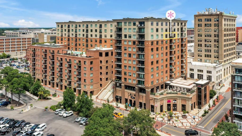 Immerse yourself in modern luxury in the heart of historic Wilmington. This 2-bedroom, 2.5-bathroom condo is an exquisite example of refined downtown living. It is uniquely positioned to capture both the flowing curves of the Cape Fear River and the striking silhouette of Wilmington's iconic skyline. River Place is not just an awesome spot to call home. It is a community experience unlike anything in the area. Enjoy the many benefits of being part of River Place, including secure entry, a rooftop pool & hot tub, fitness center, club room with billiards, a pet spa, and the vibrant energy of downtown just outside your door ? from boutique shops and acclaimed restaurants to the scenic Riverwalk. Perched on your private covered balcony, soak in stunning sunsets with the pulse of urban life humming below. The captivating views are framed by the Cape Fear Memorial Bridge, the USS North Carolina and our beautiful city's towering steeples. Inside this 11th floor unit you will discover upgraded finishes that were carefully selected to enhance each well-designed space. Rich, wide-plank flooring stretches throughout the common areas and both bedrooms, while oversized windows and an impressive sliding glass door allow natural light to pour in. The gorgeous kitchen features sleek quartz countertops, stainless steel appliances, subway tile backsplash, a spacious island with seating, and a pantry with custom organization. The primary suite is a peaceful retreat with tranquil water views, a spa-inspired bath featuring a double vanity, walk-in tiled shower with dual showerheads, and a fully customized walk-in closet. The second bedroom serves as a home office and a guest space, thanks to a built-in Murphy bed surrounded by shelving and additional storage. It includes its own en-suite bath, dual vanity, and custom closet. Two assigned parking spots and a storage locker ensure convenience and security. Whether as a full-time residence or a second home, this is Wilmington living at its finest.