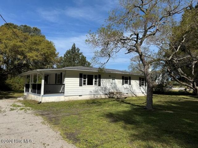 Located on a half-acre lot on McCabe Road, this home offers a renovated interior and a prime location near the Brandywine Country Club. The interior features wood laminate flooring throughout and an open-concept living and kitchen area that benefits from plenty of natural light. In addition to the two bedrooms, a bonus room provides flexible space for an office or guest room. The property also has a new roof installed in 2024, a private well and a three bedroom septic tank on-site. Outside, the front yard is framed by picturesque trees; the home also features a covered porch and a detached shed for extra storage. Situate just minutes from the water and local beaches, this property is a versatile find. It stands as a solid investment opportunity or a functional place to call home on the Crystal Coast.