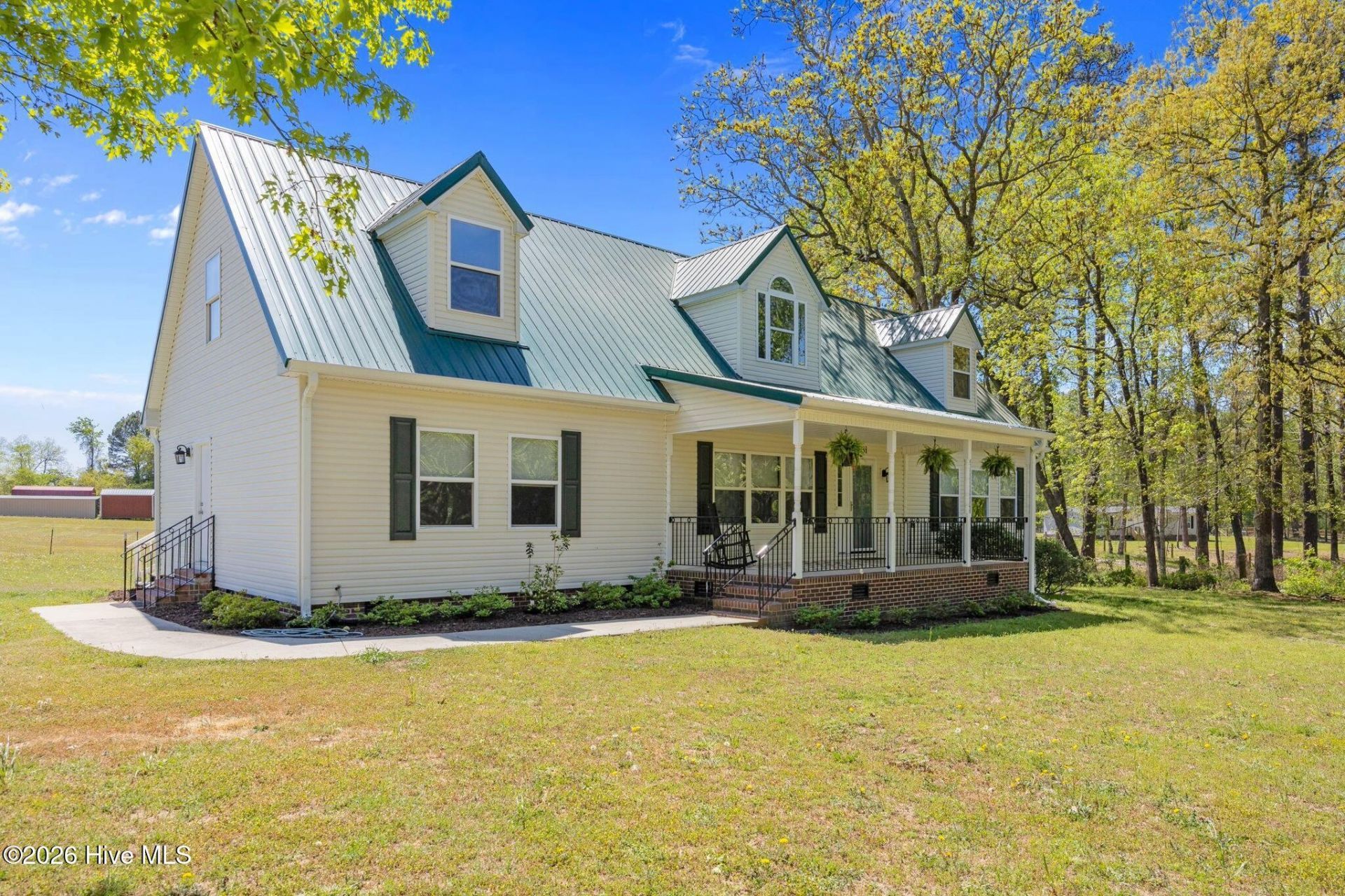 Charming 4-bedroom, 3-bath Cape Cod just off Hwy 87 with the perfect blend of comfort and country living. Situated on a large, level lot, this home features a welcoming covered front porch and a spacious rear deck. The main-level primary suite offers a sitting room and an ensuite bath complete with a garden tub, separate shower, dual vanity, and linen closet. A second bedroom on the main floor with closet and access to a full bath provides great flexibility for guests or a home office. The updated kitchen is complete with granite countertops, stainless steel appliances, and dinette area. Upstairs, you'll find two spacious bedrooms, a cozy sitting area, extra storage, and a full bath.