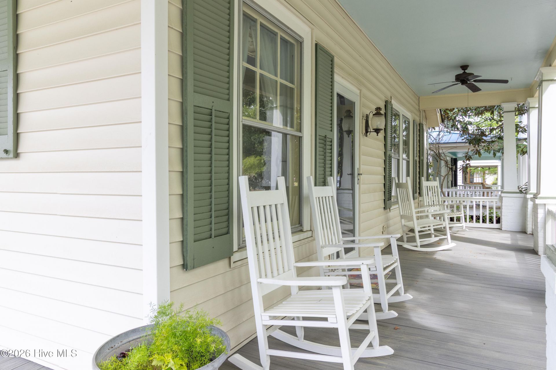 Historic home located within walking distance of charming downtown Edenton. Classic-style residence features a welcoming wraparound porch and a grand open foyer with a staircase leading upstairs.The main level includes a formal living room and dining room, perfect for entertaining. A spacious open kitchen offers ample room for cooking and includes a separate eat-in area. Enjoy the bright sunroom filled with natural sunlight throughout the day. There is also a half bath down stairs.The primary bedroom and bathroom are conveniently located on the first floor and include a walk-in closet for added comfort and storage. Upstairs, you'll find three additional bedrooms and a full bathroom, providing plenty of space for family or guests.Step outside to a private backyard featuring a patio and fire pit--perfect for outdoor entertaining. The property also includes a garage/workshop for extra storage or hobbies. Throughout the home, you'll appreciate the beautiful handcrafted woodwork that adds warmth, charm, and timeless character. Come see this beautiful historic home and be apart of the rich history in Edenton.