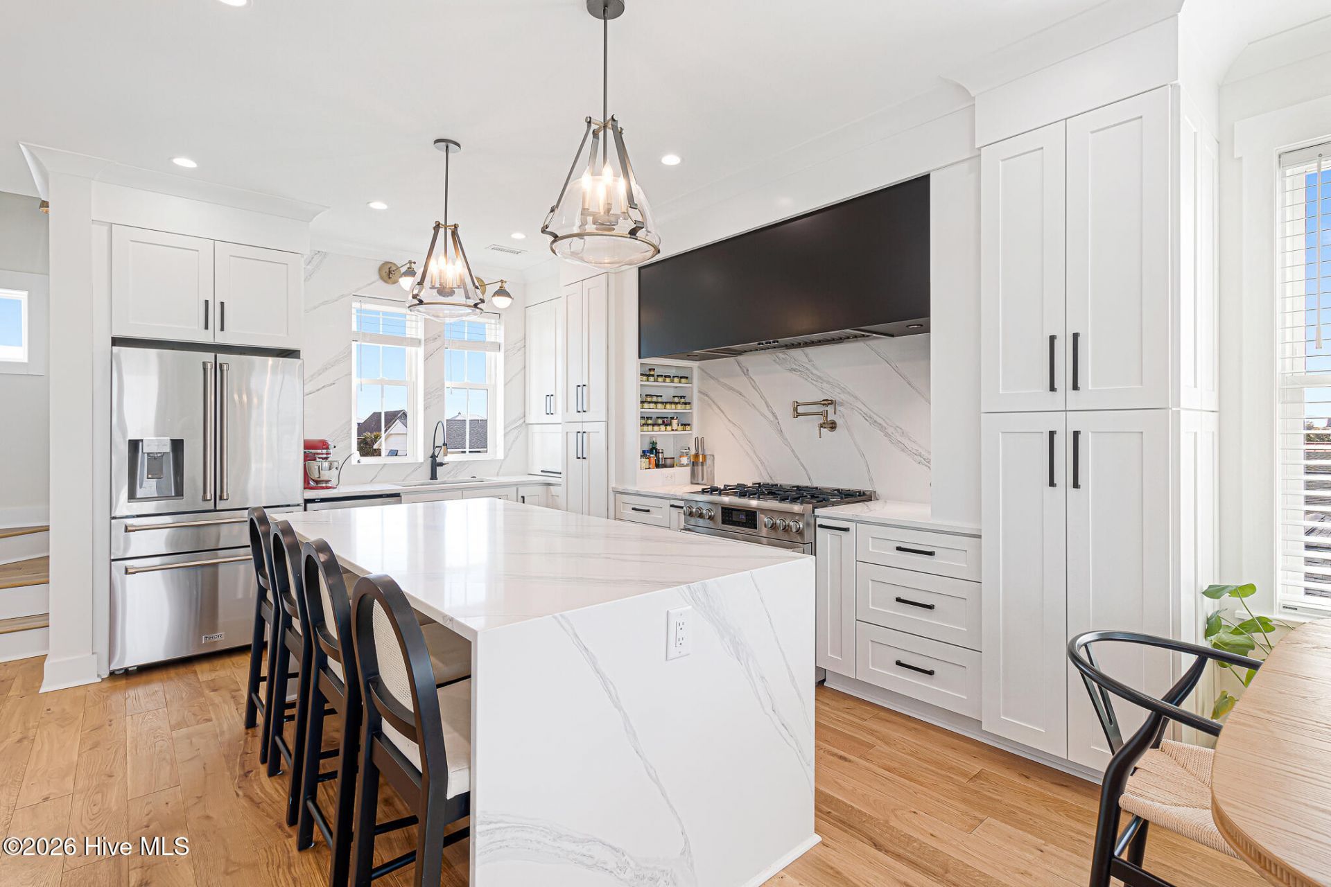 Rare gem completed in 2025 on the Canal in Atlantic Beach with private dock and the perfect setup for enjoying the coast! Experience coastal living at its finest in this stunning light-filled home. Boasting 4 spacious bedrooms and 3.5 luxurious baths across approximately 2,500 square feet, this residence was designed with both quality and style in mind. The open floor plan is complemented by high-end finishes and a sleek, low-maintenance exterior that stands out in the heart of Atlantic Beach. Perfectly situated on a canal-front lot, this home is an angler's dream realized. Preparation is effortless with a dedicated, climate-controlled tackle room located just off the lower porch, offering expansive storage for your finest gear. A high-end industrial ice maker ensures your coolers are topped off and ready for a full day offshore before you even leave the dock. Step from your large back porch into your backyard and onto the boat on your private 10,000 lb lift, seamlessly heading out to enjoy a day on the water. Extra features you'll lover include the irrigation system, whole house generator, elevator, Rinnai tankless water heater and whole house water filtration through kinetico. Best of all, this home is being sold largely furnished, allowing you to skip the setup and start living the salt life the day you close. From the sleek modern exterior to the premier waterfront location, 524 N Kinston Ave is the turnkey retreat you've been waiting for.