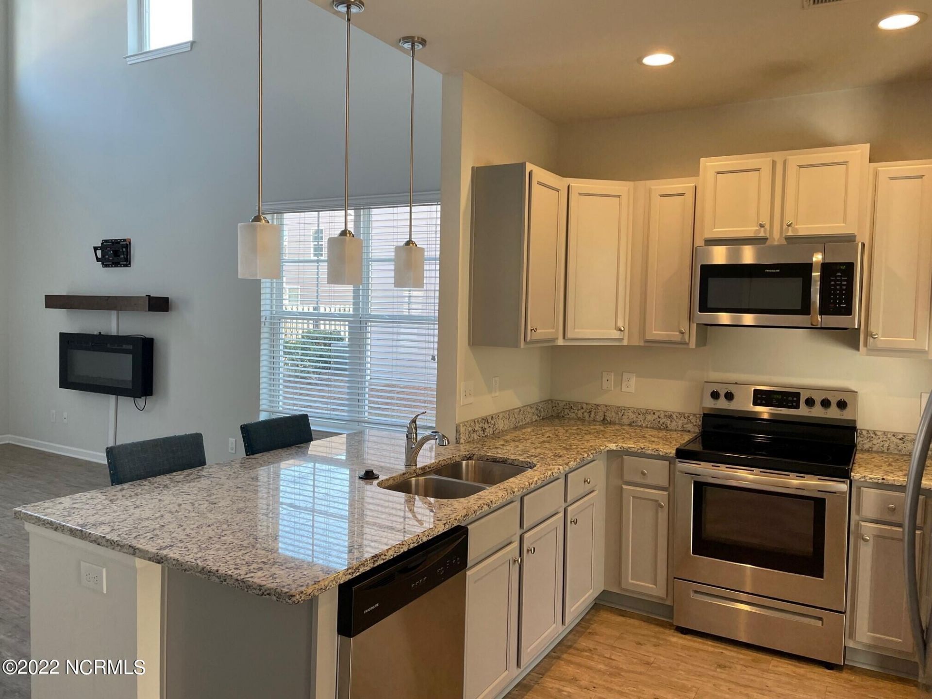 Welcome to one of Wilmington's best kept secrets. This luxury 3 bed, 2.5 bath end unit townhome is in a phenomenal location and ready for it's next owner. With 18 ft ceilings and an abundance of natural light beaming in from the windows in the living room. The living room features a built in mantel and 50 inch electric fireplace. There is a master on the main floor with a large walk in closet, dual sinks, garden tub and stand up shower. The kitchen is bright and open with grey cabinets and beautiful granite counter tops, additionally the kitchen comes equipped with ss appliances and a formal dining room upon entry of the unit. A 1 car garage is also attached and convenient for parking or additional storage. Two additional rooms are upstairs with walk in closets and share a common bathroom. There is a loft upstairs as well, ideal for a playroom, office, or secondary media room. You'll love the quiet neighborhood and the convenience of the cul-de-sac and sidewalks. Outside there is also a patio with an extended space for grilling and a gas firepit. This unit truly does have it all and is only a short distance to Starbucks, Seven Mile Post, Sour Barn, Publix and Bojangles and much more.