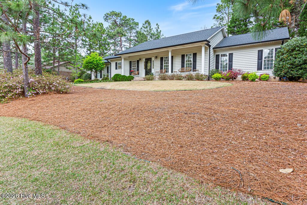 Welcome to this beautifully renovated, meticulously maintained single-story home in the heart of Pinehurst, just minutes from Pinehurst Country Club. Thoughtfully designed for comfort and ease, this home features two spacious primary suites--each with a private en-suite bath, floor-to-ceiling tiled showers, and custom walk-in closets--offering privacy and comfort for both owners and guests. The open living space is filled with natural light from expansive windows, boasts engineered hardwood maple flooring in living areas, and is anchored by a gas fireplace with built-in bookcases, flowing seamlessly into the fully renovated kitchen with semi-custom cabinetry, quartz countertops with extended bar seating, stainless steel appliances, and a gas range. Step outside to a beautiful, abundant blooming landscape, with a private, fully-fenced backyard retreat featuring a screened-in porch, multiple patio areas, terraced garden beds, and a pergola--perfect for relaxing or entertaining. A rare opportunity for refined, low-maintenance, single-level living in one of Pinehurst's most desirable locations. This property also includes an oversized two-car garage with built-in cabinetry and shelving for storage, new crawl space vapor barrier with dehumidifier, front and back irrigation, a termite bond, and so much more! Schedule your showing today.