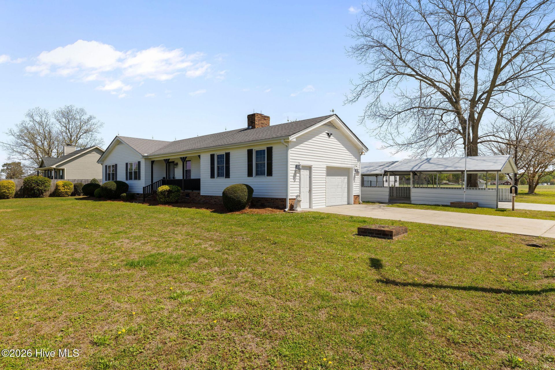 Nestled in a quiet, private rural setting in Mount Olive, this charming updated ranch offers 3 bedrooms and 2 full baths with a comfortable, functional layout. The spacious living room features gas logs and flows into a designated dining area, creating an inviting space for everyday living and entertaining. The open kitchen offers solid surface countertops, subway tile backsplash, and updated fixtures and hardware throughout. Three large bedrooms provide ample space for family or guests. Enjoy the outdoors from the enclosed raised patio overlooking a fenced backyard complete with a storage shed, mature landscaping, and beautiful pecan trees. Additional features include a side-entry garage, covered carport with concrete pad, and a welcoming rocking chair front porch--perfect for enjoying peaceful country living. Conveniently located near the University of Mount Olive, Goldsboro, and Seymour Johnson AFB, this home offers the ideal balance of privacy and accessibility.