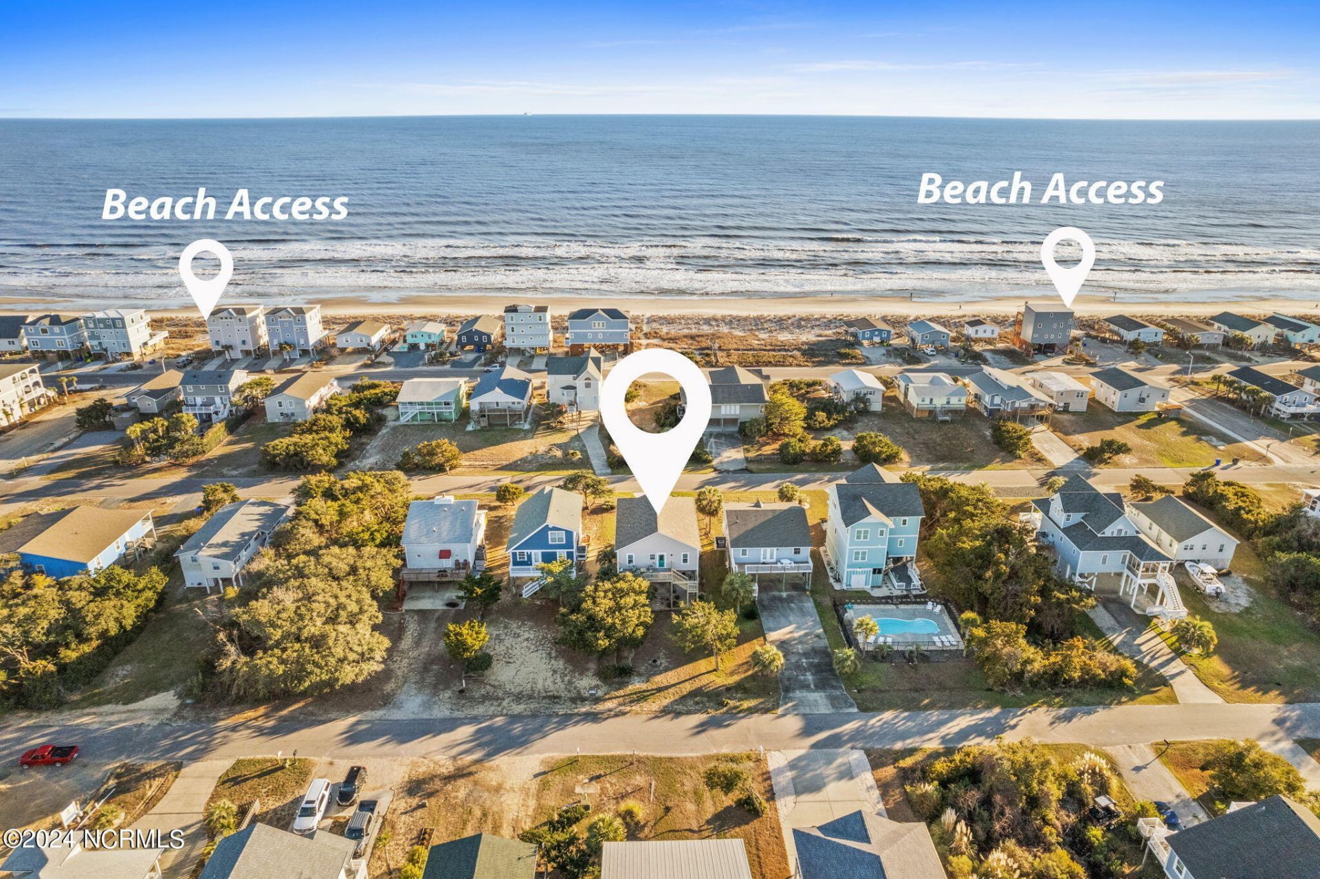 Looking for a BIG ocean view without the hefty price tag? Introducing this immaculate 4 bedroom, 2 full bath island residence situated in a highly desirable location close to oceanfront dining, the pier, public beach access, the 9th St. scenic walkover and canal overlook, and Swain's Cut bridge for easy access on and off the island. All furniture and kitchen appliances are included. Imagine all the memories you'll make on the Trex® deck porches taking in the incredible ocean views on the front and tranquil marsh views in the rear. Enjoy the warm morning sun on the porch while watching a pod of dolphins jumping and playing in the surf. Local lore says the home across the street was moved from the oceanfront to the second row. The owners of that property do actually still own the two and half lots on the beachfront, preserving the natural habitat and offering incredible views. Inside features include hardwood and tile flooring, updated baths and kitchen with stainless appliances and tiled backsplash in 2017. The owner's bedroom has views of the ocean as does the front guest bedroom. Roof and HVAC system are less than 9 years old. Huge ground level storage area is ideal for all your beach supplies, fishing gear, and kayaks. There is an abundance of parking in the paved driveway and sizable 12'8'' under house clearance for potential to store your center console boat, offering more protection from the outdoor elements. After spending time on the beach, head home and jump into the outdoor shower to wash off the salt and sand. Mature landscaping surrounding the home provides privacy and shade, and there is even room in the rear to potentially add a pool. Enjoy golf, delicious restaurants, shopping, brewery, cafes, water sports, and more without ever leaving the island! This amazing ocean view residence will offer you the coastal lifestyle you desire. Secure your island paradise today!